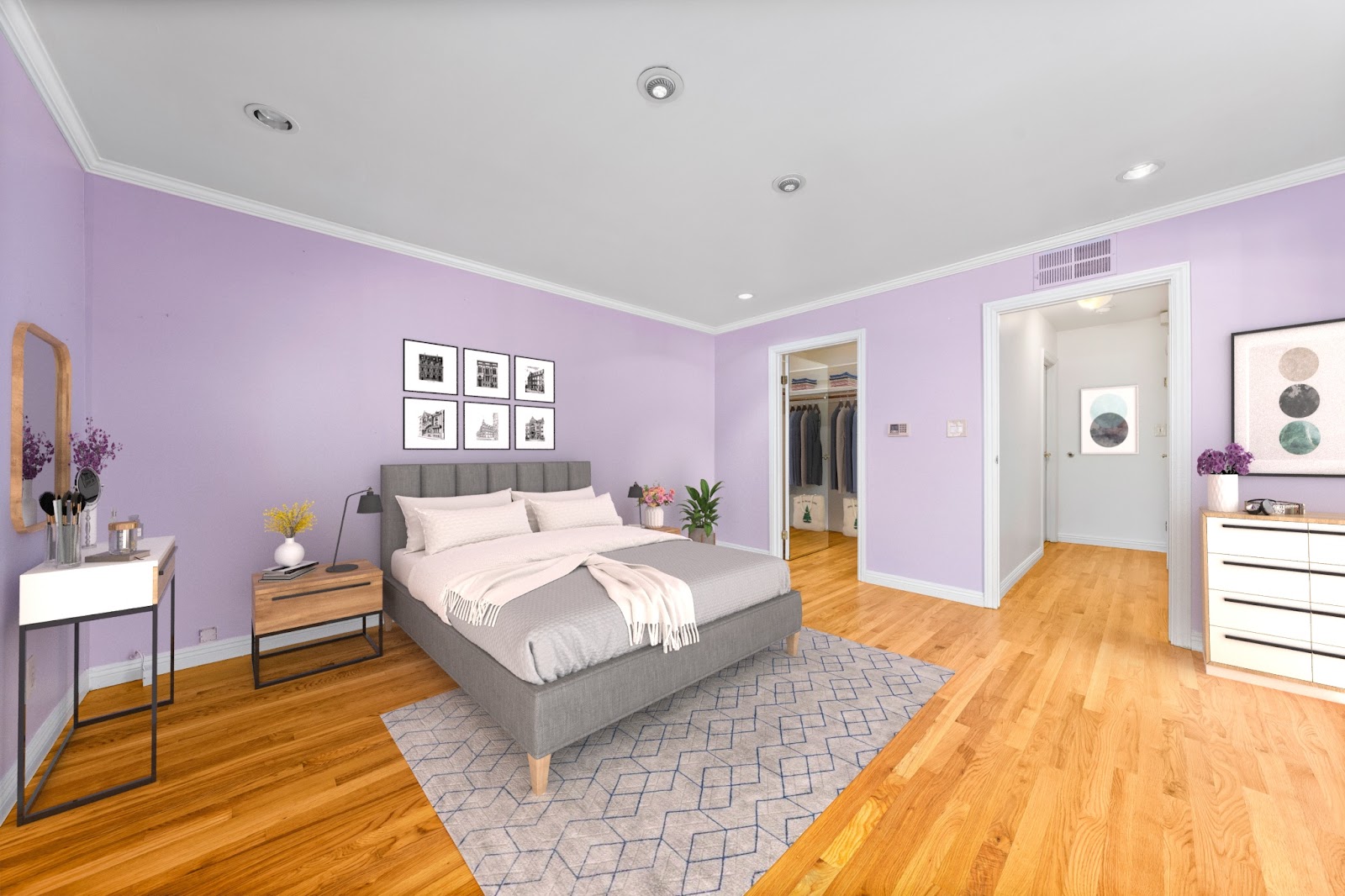 The bedroom went from drab to fab after staging. The king-sized bed was made to look cozy to go with the art pieces on the wall.